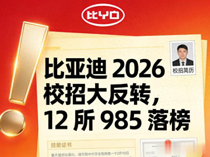 万万没想到!比亚迪 2026 校招名单一曝光,直接惊掉众人下巴!清华北大入围不意外,深圳大学却杀出重围—— 这所既非 985、211,连双一流都没沾边的 “双非”,居然和清北复交站在同一招聘梯队。